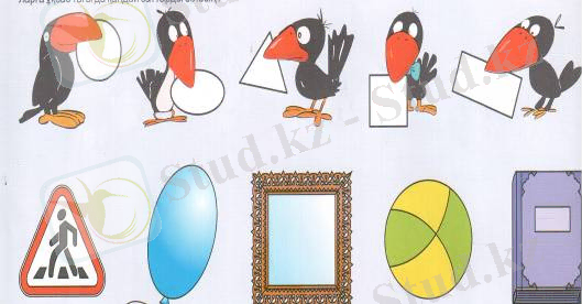 -Олай болса балалар, біздер мына тапсырманы орындайық. (қағаз бетінде балалар қарғаның аузындағы пішіндер мен ұқсас заттарды қосып сызу керек. )