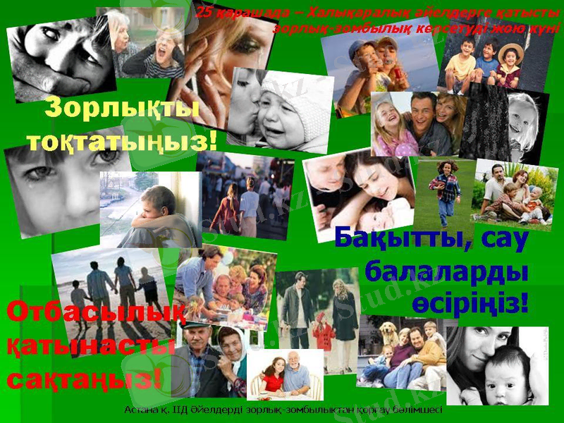 Зорлық -зомбылық адам ағзасына тікелей әсер ететінін түсіндіру.