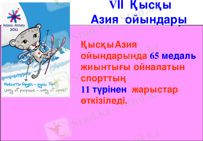 Лекция VІІ Қысқы Азия ойындарына арналады.