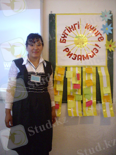- Балалар, бәріміз шаттық шеңберіне жиналайық. Енді бір-бірімізге бүгінгі күніміздің тамаша өтуіне арнап жақсы тілектер айтайық. (Оқушылар «Досыммен бірге» ойыны арқылы бір-біріне бүгінгі күннің көңілді өтуіне арнаған тілектерін айтады. )