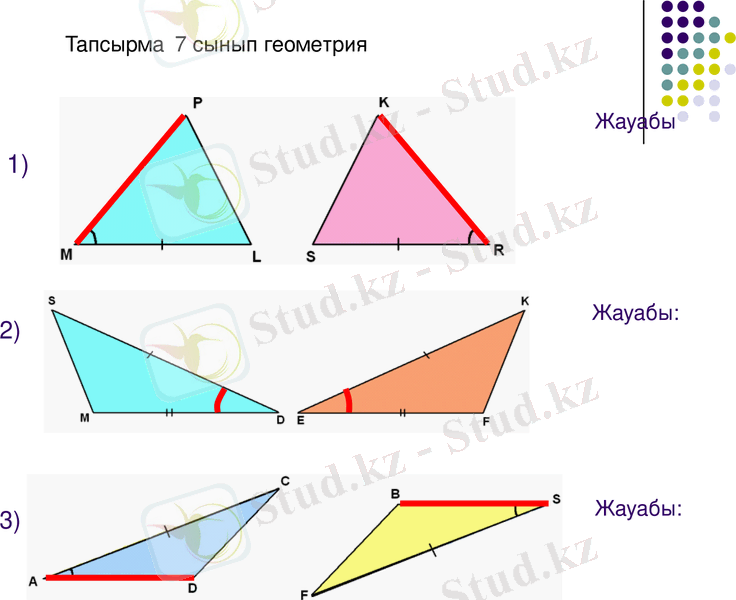 1. «Үш элементі (екі қабырғасы мен олардың арасындағы бұрыш) бойынша үшбұрышты толықтырып салуға бола ма?