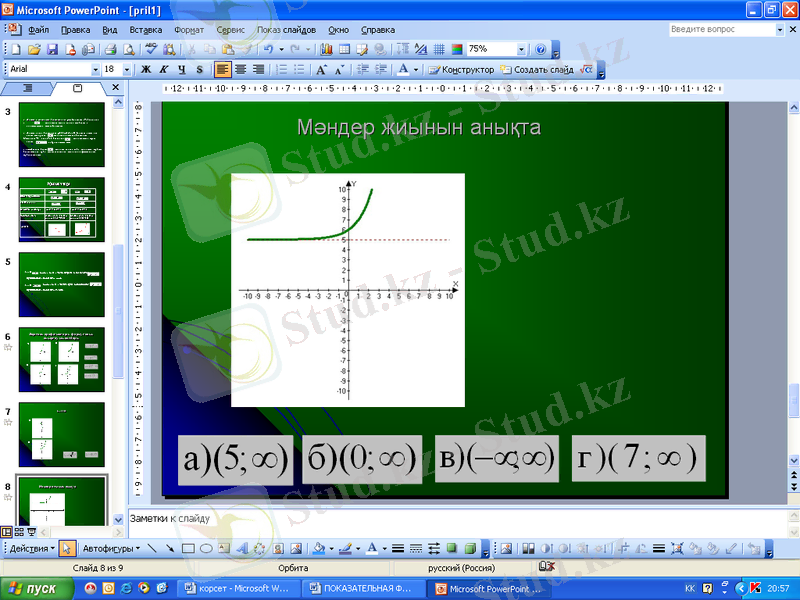 1. Оқушыларға көрсеткіштік қасиеттері мен графигін салу, көрсеткіштік функцияның қасиеттерін пайдаланып есептер шығару және графигін салу жолдарын түсіндіру