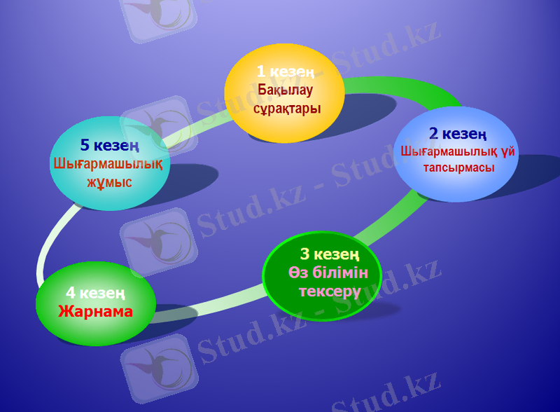 V. Қортынды: Шығармашылық жұмыс, қорғау. 15 мин.