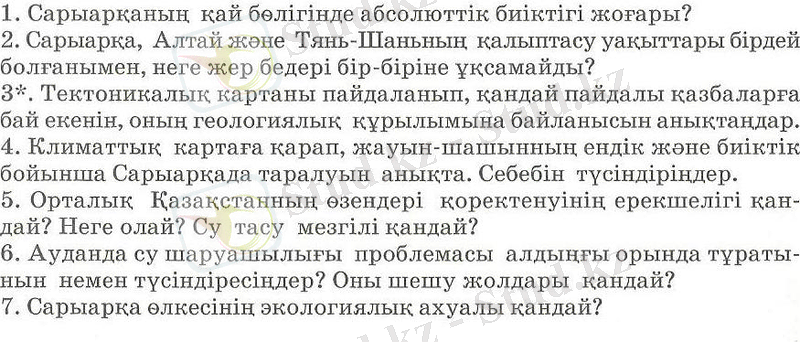 Сарыарқа физикалық-географиялық аймағы тақырыбы бойынша сұрақтар: