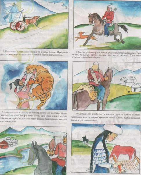 Сюжетті суретке қарап, сурет мазмұнына лайық шағын ертегі құрастыру.