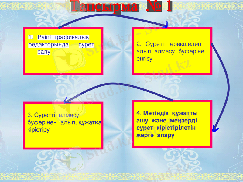 Word - тың графикалық мүмкіндіктеріне байланысты алты тапсырма беріледі.