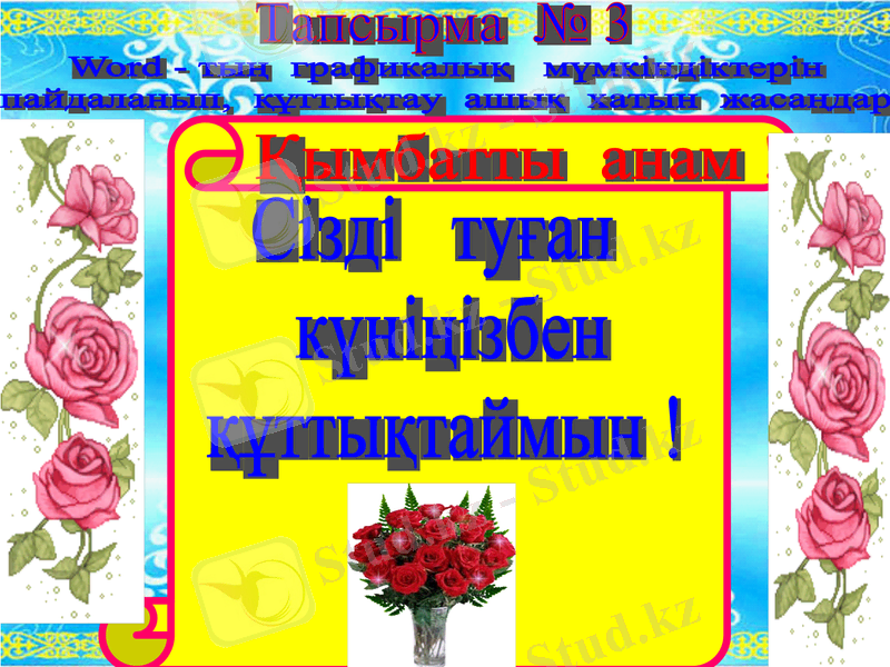 WORD - тың графикалық мүмкіндіктерін пайдаланып, құттықтау ашық хатын жасау.