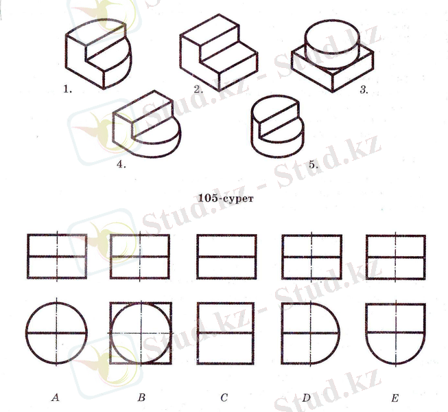 Көрініс түрлері: алдыңғы, үстіңгі, сол жақ, оң жақ, астыңғы, артқы көрініс.