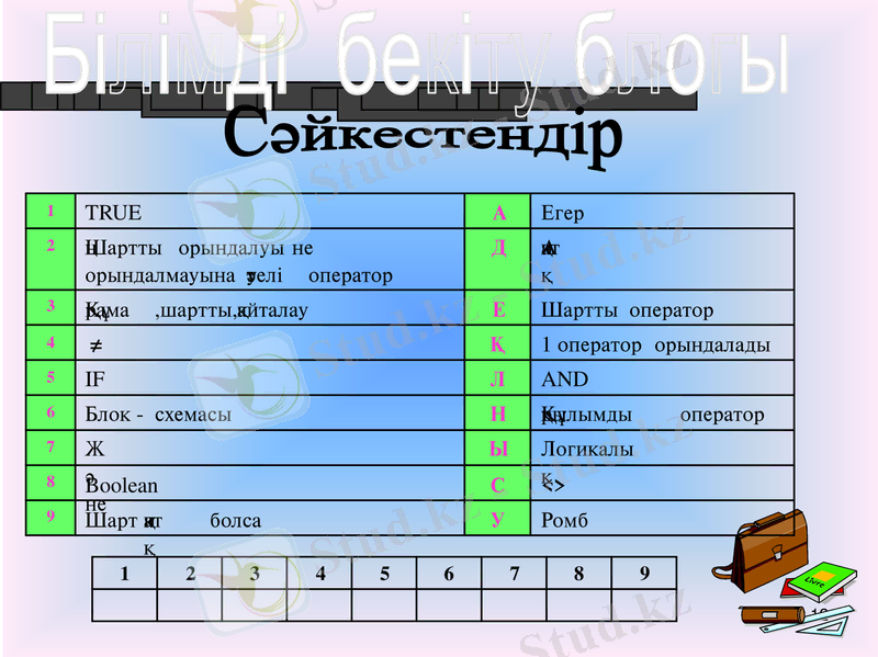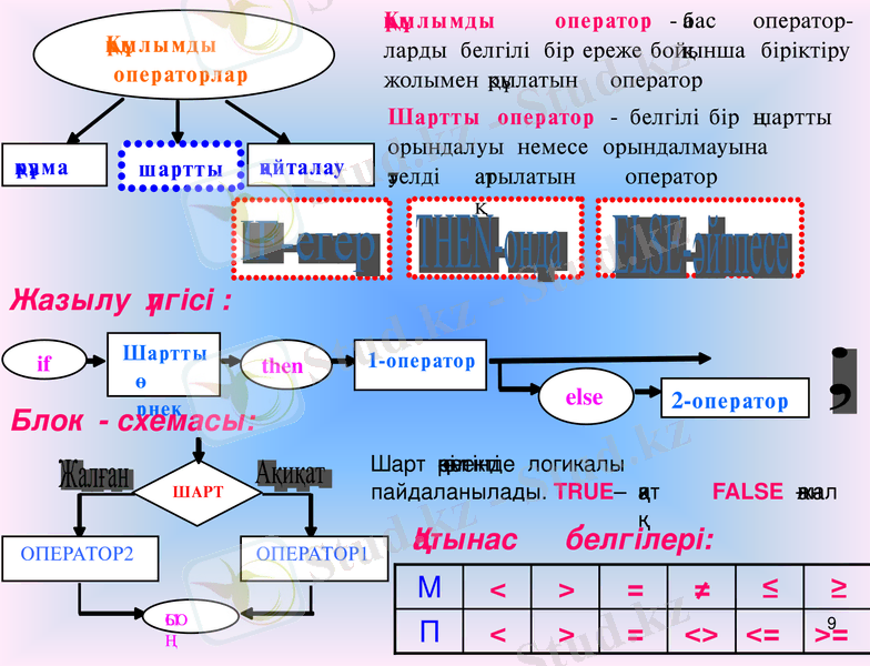 5. Жарайсыңдар, олай болса бүгінгі сабақтың тақырыбы Шартты оператор .
