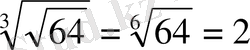 5. Түбірден түбір шығару үшін түбір таңбасының ішіндегі өрнекті өзгеріссіз қалдырып, көрсеткіші берілген екі түбірдің көрсеткіштерінің көбейтіндісіне тең түбірден шығару керек: