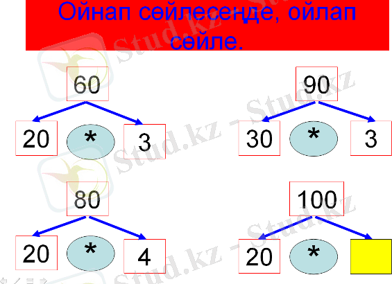 - Ендеше бастаймыз. Бірінші «Ой қозғау» ой сөзіне мақалды мен айтайын. Слайд арқылы көрсетіледі. Берілген сандардың құрамын табуға арналған тапсырма