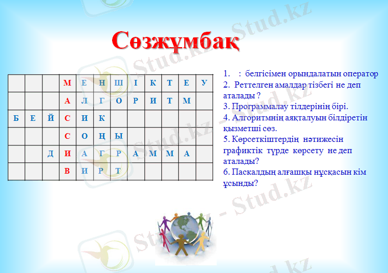 Оқушы білуі қажет: Массивке берілген есептерге программа жазуды.