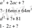 - қысқаша көбейту формулалары бойынша білімдерін тексеру.