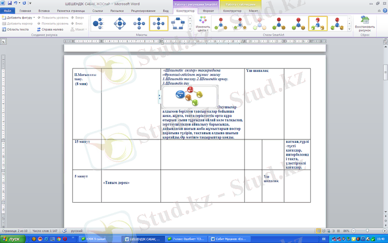 Әр топ мүшелері өткен сабаққа рефлексия жасайды: Мен . . . таныстым. . ; . . . маған оңай болған жоқ. Ерекше ұнағаны. . ; . . . рахмет айтамын. Мен болашақта. . ; . . жазып көремін.