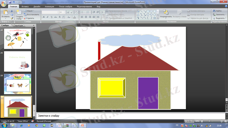 І тапсырма. Paint графикалық редакторының құралдарын пайдаланып, үйдің суретін салыңыз.
