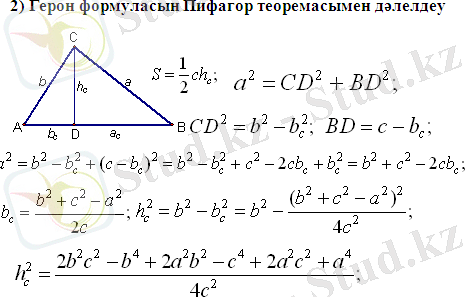 ә) Герон формуласын Пифагор теоремасы арқылы дәлелдеу