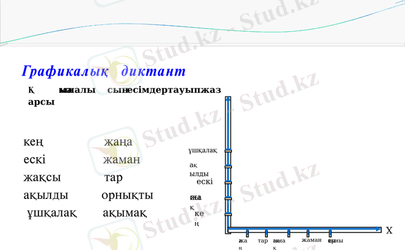 Дамытушылығы: Оқушылардың сөздік қорын, шығармашылық қабілетін, сауатты әрі көркем жазу дағдысын жетілдіру, дамыту.