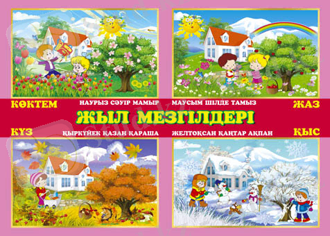 Төмендегі сын есімдерді жылдың төрт мезгілінің суретінің астына қатыстырып жазу: