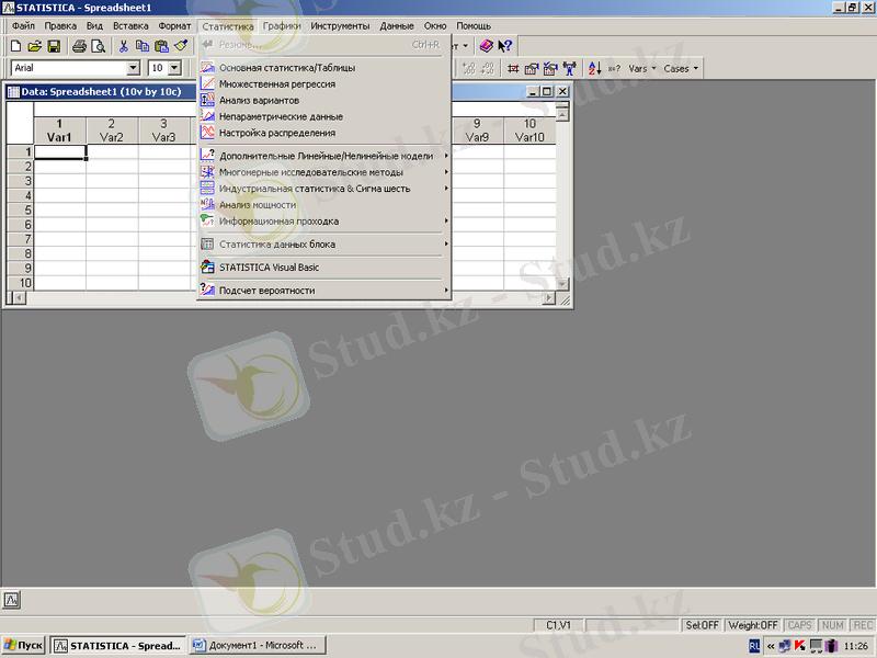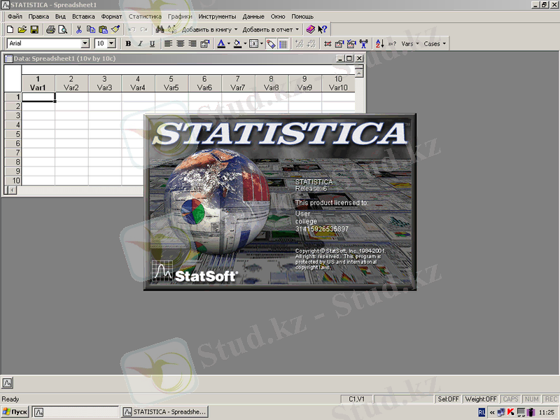 Медицина маманының болашақ кәсібінде Stataistica пекетімен жұмыс істеуге тура келеді. Бағдарламаның негізгі терезесін экрандағы суреттен көруге болады.