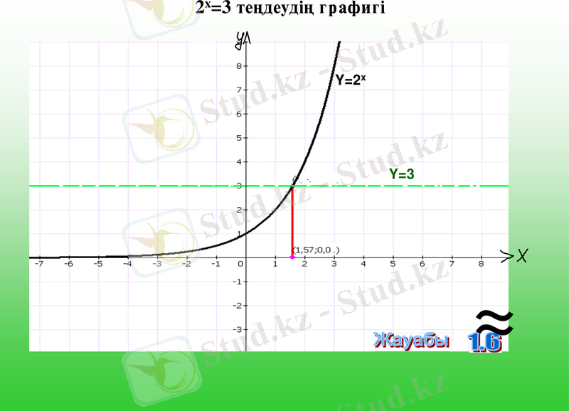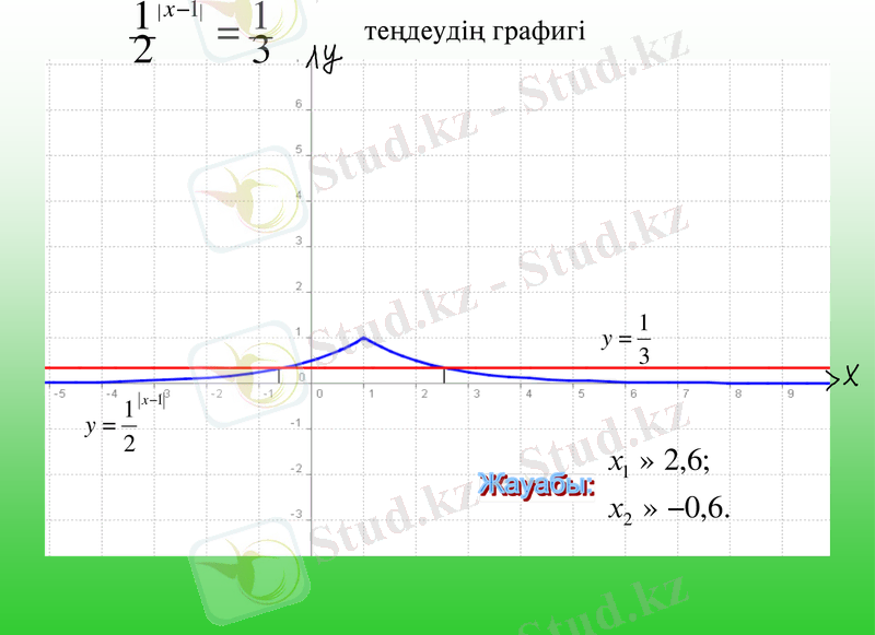 бір ғана нүктеде қиылысады. Сондықтан берілген теңдеудің түбірі х=2.