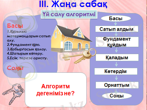 - Біз бүгін үй салу алгоритмін құрамыз.