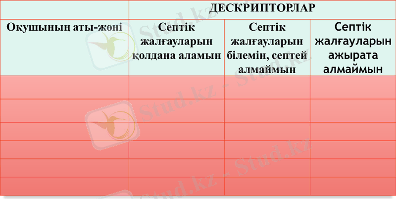Балалар өздігінен сөздерді септей алады, тапсырма орындай отыра білімдерін бағалай алады.