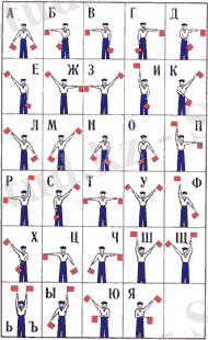 Бұл кемелердің бі бірімен ең оңай байланысуы болып табылады. Хабардың мәтіні жалаулар арқылы семафор әліппесінің әріптерімен жіберіліп тұрған. Әр түрлі қимылы мен қолдың қозғалысына қарай әліппедегі бір әріпіне сәйкес келеді. Хабарды жалаумен жіберу үшін жақсы орын табылады, хабарды жіберуші мен қабылдаушы бір бірін жақсы көріп тұру үшін. Семафор арқылы хабарды қабылдау тек екі адам арқылы жүзеге асырылады, біреуі қабылдайды (оқиды) мәтінді, ал екіншісі мазмұнын жазып отырады.