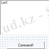 2. Пішінде екі басқару элементін орнатыңдар. Біріншісі - ListBox1 Тізім басқару элементі, екіншісі - CommandButton1 басқару элементі. Оларды келесі суретте көрсетілгендей етіп, орналастырыңдар.