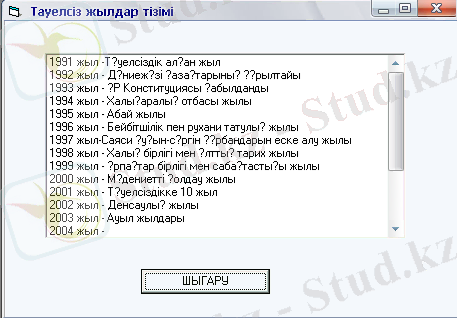 List1. Additem “1991 жыл -Тәуелсіздік алған жыл”