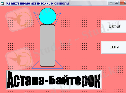 2. Пішінге келесі басқару элементтерін орнатып, олардың қасиеттерін сәйкесінше өзгертіңдер: