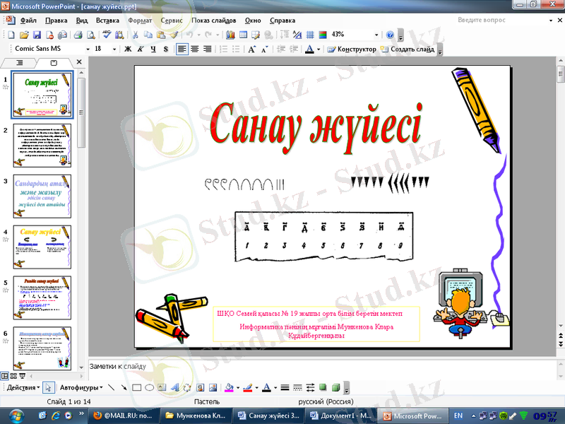 4. Компьтермен жұмыс. Есеп шығару. Слайдпен жұмыс.