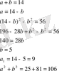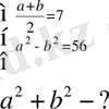 В) Екі санның арифметикалық ортасы 7-ге, ал квадраттарының айырымы 56-ға тең. Осы екі санның квадраттарының қосындысын тап.
