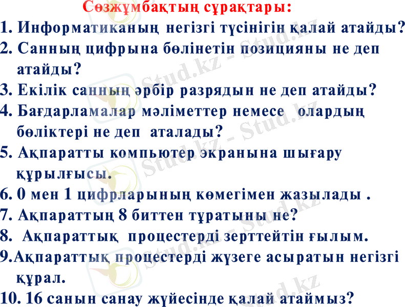 Мысалы: 1) 0101 0101 2 = 0*2 3 +1*2 2 +0*2 1 +1*2 0 =4+1=5 10