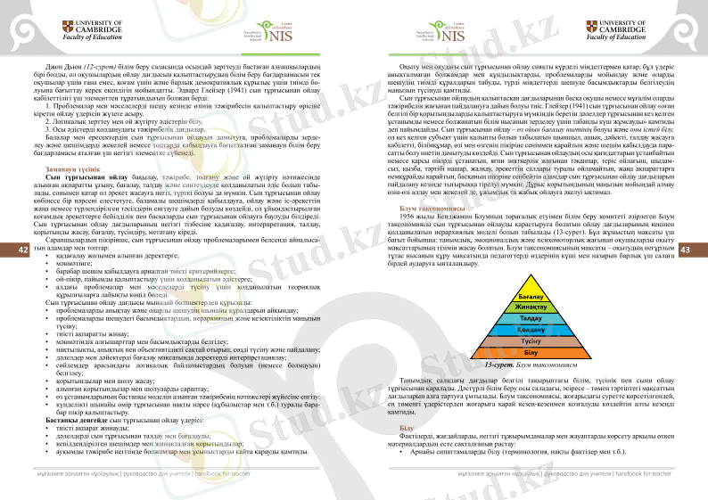 «Блум таксономиясын түінесіз бе?» топтарға таратпа парақшаларды үлестіріп беремін және топ мүшелерінің бөлісіп оқуларын сұраймын