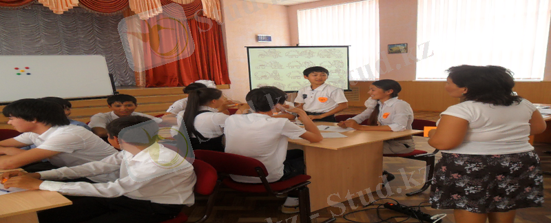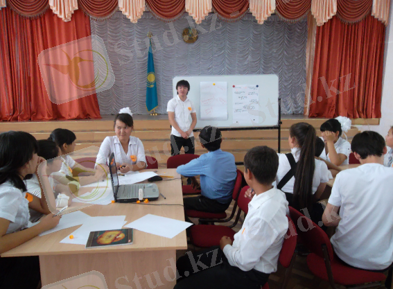 Сонымен мен сабағымның білім кезеңінде диалогтік сұрақ - жауап арқылы шағын тренингтермен сабақты ұйымдастырдым. Ол үшін мен оқушыларымды «Мен қандай түсті ұнатамын?» атты тренингін жүргіздім. Қорытындысында оқушылар таңдаған түстеріне қарай 3 топқа бөлінді. 3 топ жұмыс жасауға кірісті. «Мен кіммін?» тренингі бойынша оқушылар бірнеше рет жауап қайтару арқылы өз - өздерін ерекше бағалап көрсету керек болатын. Бірақ, оқушылардың арасында жылдам оқушылар ерекше көзге түсіп, ал баяу оқушыларым артта қалып отырды. Себебі оқушыларым сыни тұрғыда ойлауға қалыптаспаған. «Жеке тұлға» тренингінде берілген бес сөз (ата - ана, махаббат, ақша, жеке тұлға және бала) ішінде қай сөзді бірінші кезекке қоятынын анықтау кезінде тапсырмаға іліге алмай отырған оқушыларыма диалогтік сұрақтар арқылы бағыт - бағдар беріп отырдым. Нәтижесінде оқушының көкейіндегі өзін - өзі бағалауы және тұлғалық ерекшелігі айқындалды. Тіпті енжар оқушыларым да дәлелдер айтуға тырысты. Ал «Менің жағымды - жағымсыз жақтарым» тренингінде оқушы өзінің бойындағы ерекшеліктерін тізіп жазу арқылы өзіне сыни ойлау арқылы сын көзбен қарап және өзін - өзі бағалады. Ал топ ішіндегі өзімшіл оқушыларым жазуға сөз таба алмай қиналып та отырды. Білім кезеңінде топ ішіндегі өзін ерекше көрсеткен оқушы көшбасшы болды. Көшбасшы бағалау бетшесінің критерилерімен танысып, формативті түрде бағалауға кірісті.
