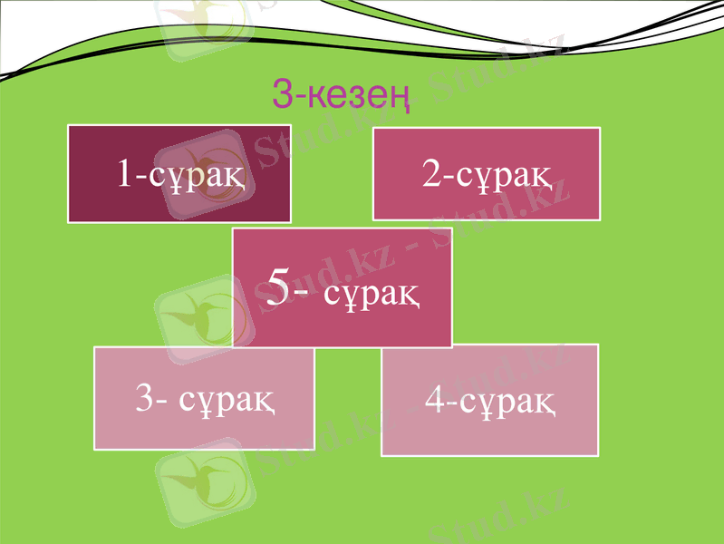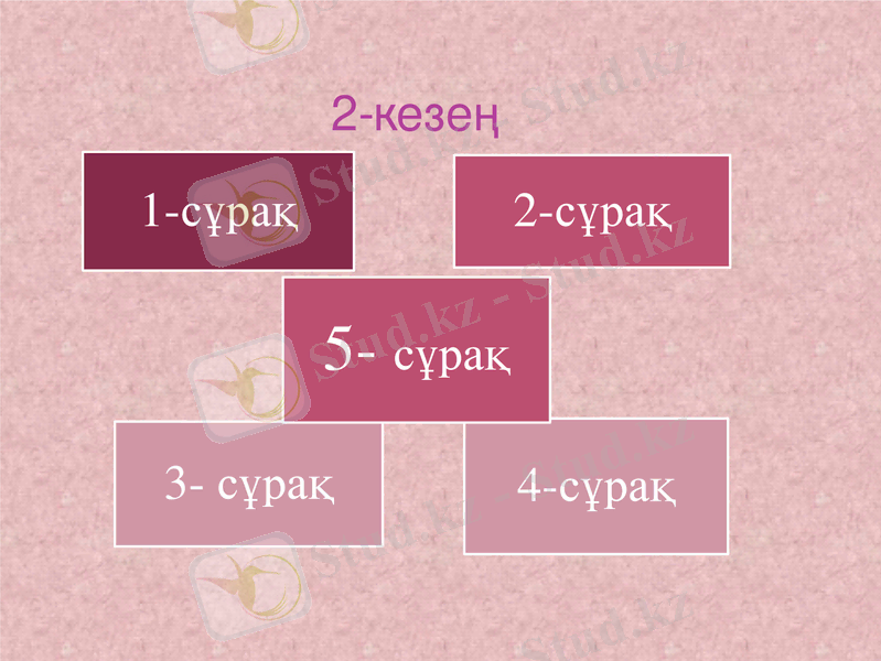 2-кезеңде 5 сұрақ беріледі. Сұрақтың кілт сөздеріне