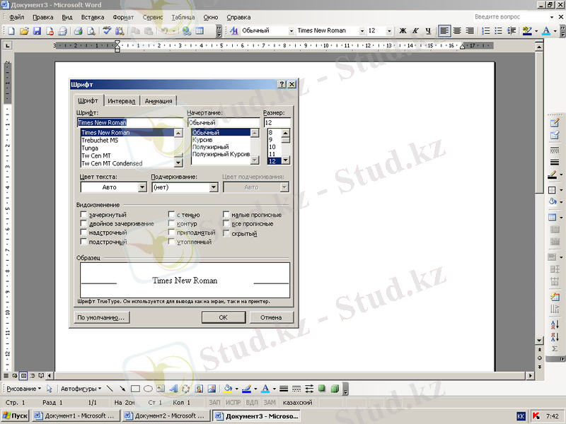 Б) Формат - Қаріп - қаріп диалог терезесі арқылы*