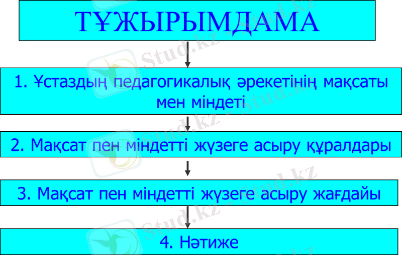 - мақсат пен міндетті белгілеп, түпкі нәтижені анықтау (нені және неліктен үйретеміз?) ;