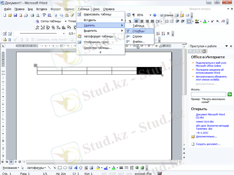 3-әдіс. Мәзір жолы: Кесте🡪Кесте сызу
