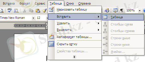 1 әдіс. Мәзір жолы: Кесте🡪 Қою🡪Кесте