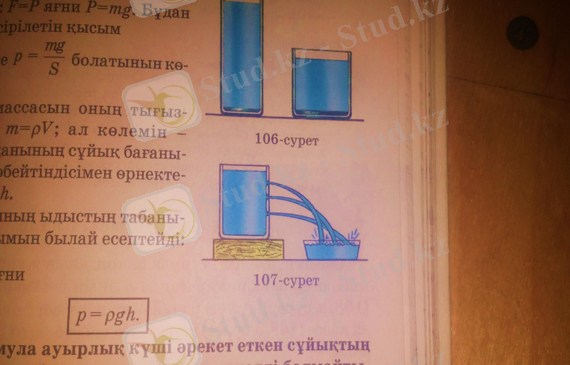 газ көлемін кішірейтсе, газ қысымы артатынын, ал көлемін ұлғайтса, қысымы кемитінін, сұйық қысымы сұйық бағанының биіктігіне тәуелді екеніне тәжірибе жасап көреді. формуланы дәлелдейді.