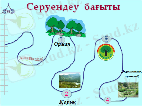 Берілген бағыт бойынша серуендеп, тапсырмалар орындаймыз. 1. Орманға барып, лақтырып тастаған ыдыстарды жинаймыз. Ол ауызша есептеулер мен ережелерді айтамыз.