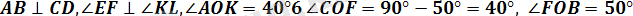 ∠COF=∠KOF-∠KOC=90°-50°=40°