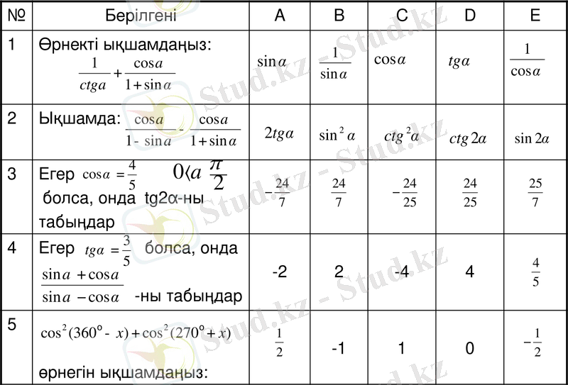 1. Логарифмнің қасиеті бойынша дұрыс тепе-теңдікті тап?