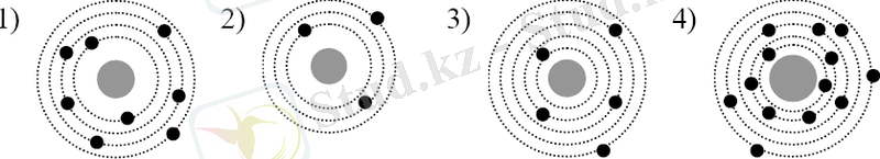 1) Суретте төрт атомның схемасы бейнеленген. Қою қара нүктемен электрондар белгіленген.