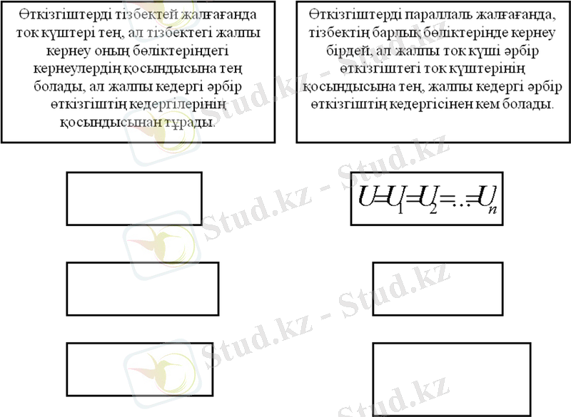 Екі резистор тібектей жалғанғандықтан өтетін ток күші бірдей. Сондықтан өткізгіштерді тізбектей жалғау кезіндегі формулаларды қолданамыз.