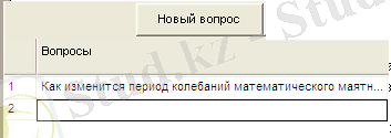 е) Бірінші сұрақты енгізеп болған соң Новый вопрос батырмасын шертеміз. Бірінші сұрақтың астында 2 цифры пайда болады. Оның қатарын шертіп екінші сұрақты енгізе бастаймыз.