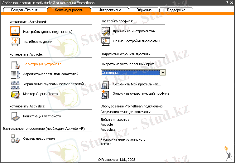№1 сүрет. Добро пожаловать в Activstudio сұқбат терезесі.