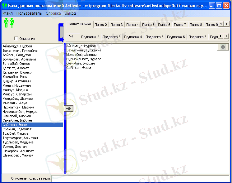 №9 сүрет. База данных пользователей Activote жұмыс терезесі.