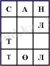 СЕРТ/С А РТ/ Қ АРТ/ҚАР А /ҚАЛА САН/СА Л / Т АЛ/ТӨЛ